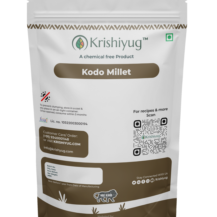 - 100% Natural & Unpolished: Krishiyug Kodo Millet is pure, chemical-free, and unpolished—retaining the authentic texture, nutrition, and earthy taste of Good-quality whole Kodo grains.